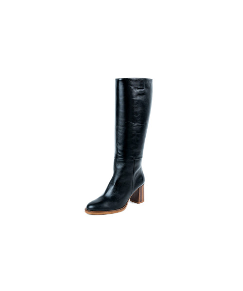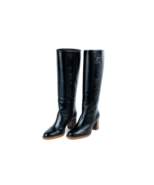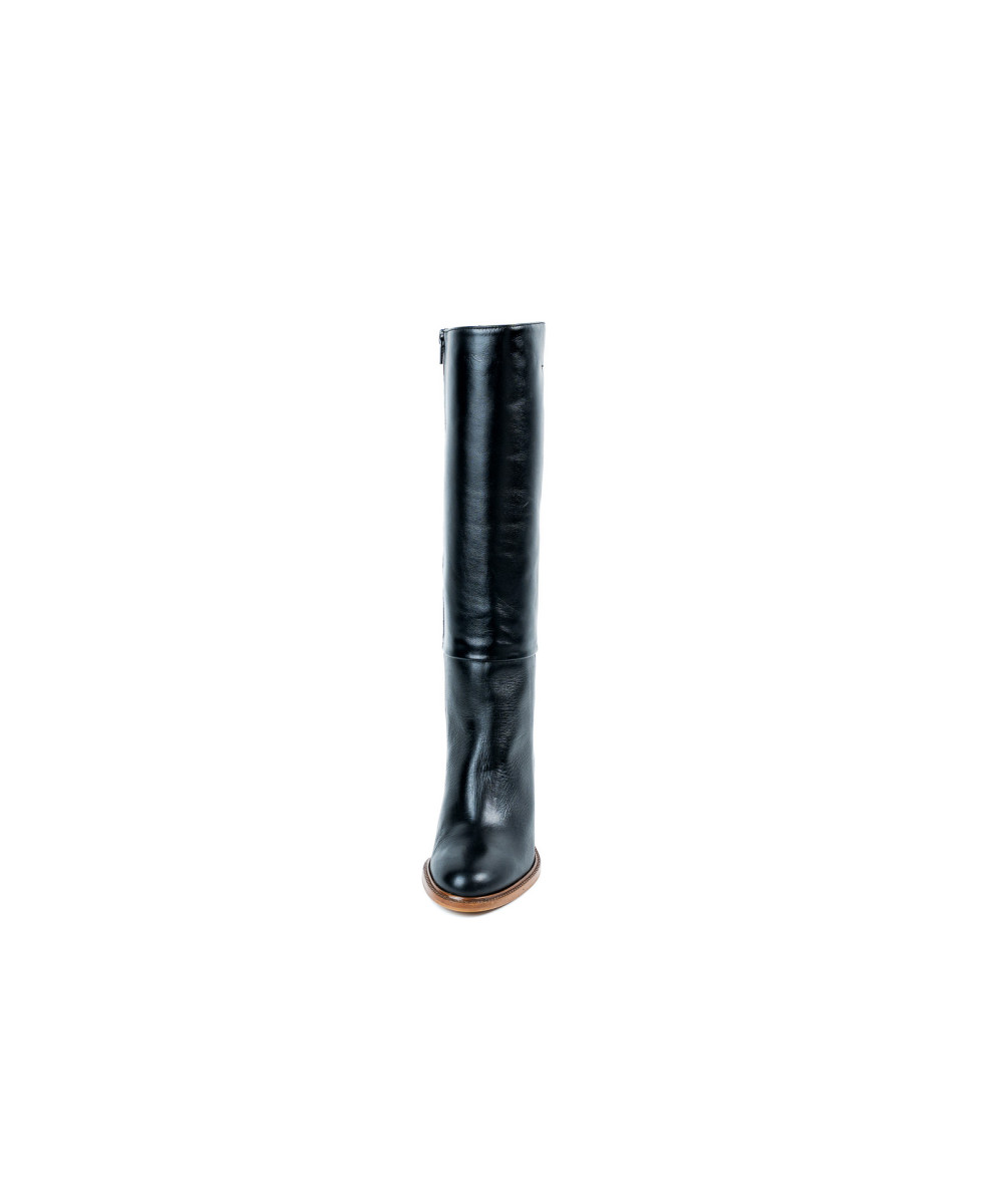 Boot made of black leather. Designed with an elegant round toe, it is characterised by its simplicity and height. This model is easy to put on thanks to a zip on the inner side, allowing you to wear them comfortably with their 7.5 cm medium heel.