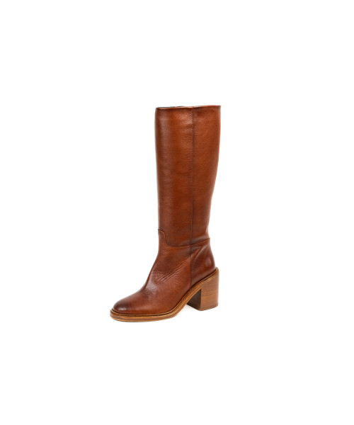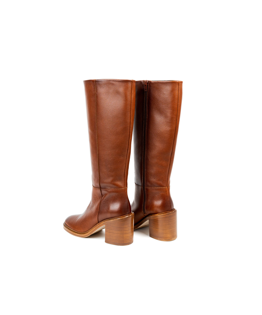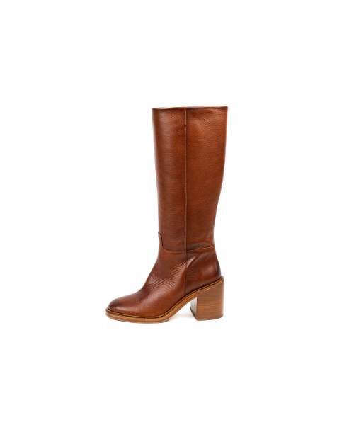 Boot made of brown leather. Designed with an elegant round toe, it is characterised by its elegance and simplicity. This model is easy to adjust with a zip on the inner side, allowing you to wear them comfortably with an 8 cm high heel.
