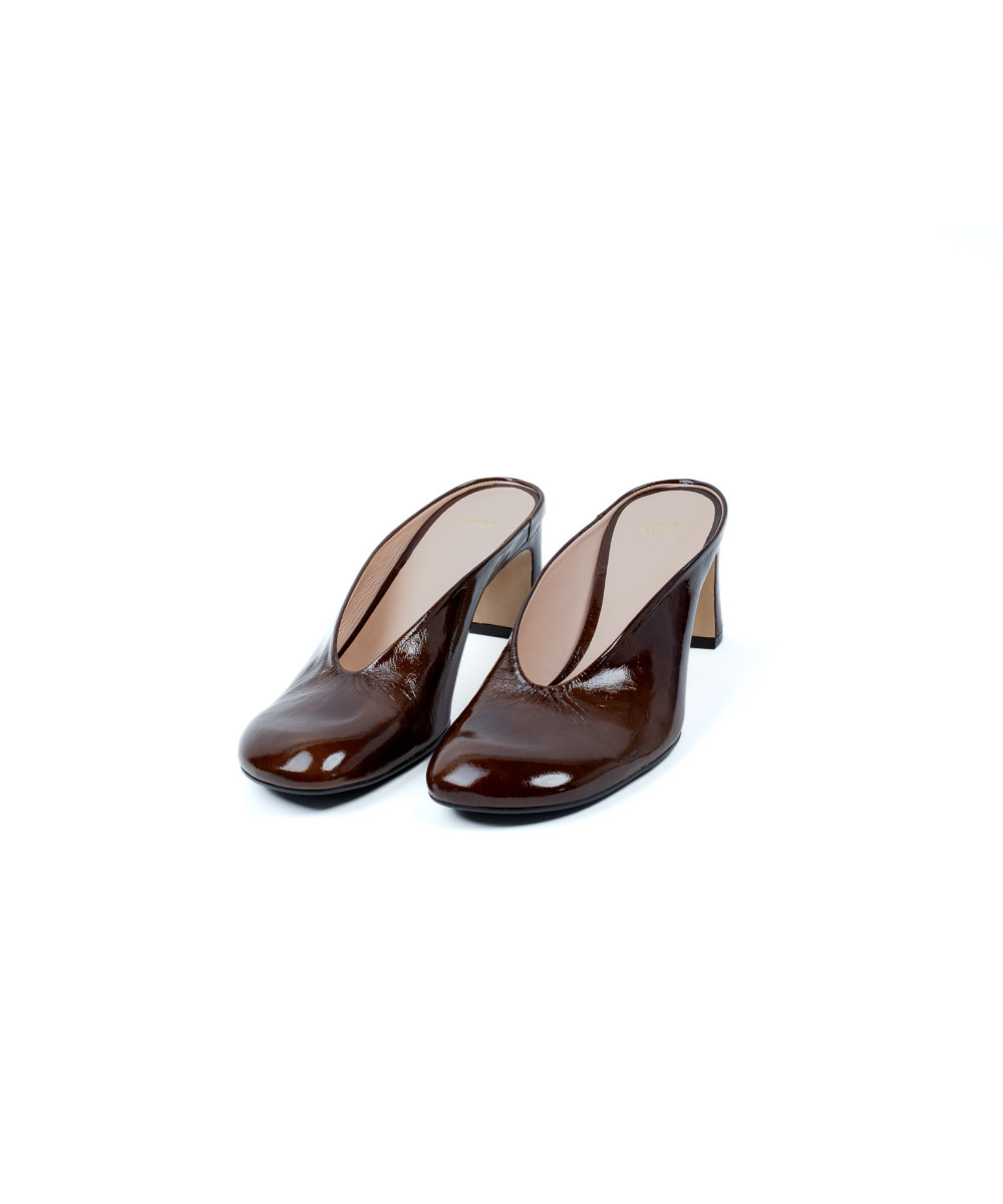 Mule color chocolate fabricado en piel. Diseñado en una elegante punta redonda, se caracteriza su elegante diseño destalonado clásico. Este modelo se ajusta fácilmente sin cierres para llevarlos cómodamente junto a su tacón medio.