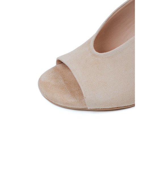 SANDALIA DE ANTE CAMEL CON PUNTA ABIERTA