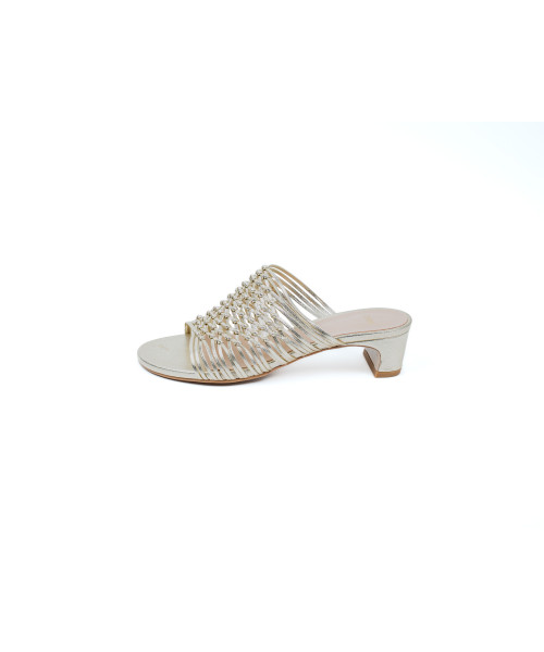 Sandalia destalonada de color dorado elaborado en rafia. Diseñado en punta, este original diseño de ganchillo trenzado a mano por artesanos locales, facilita la transpiración. Adicionalmente, esta sandalia tiene un pequeño tacón que combina elegancia y comodidad.