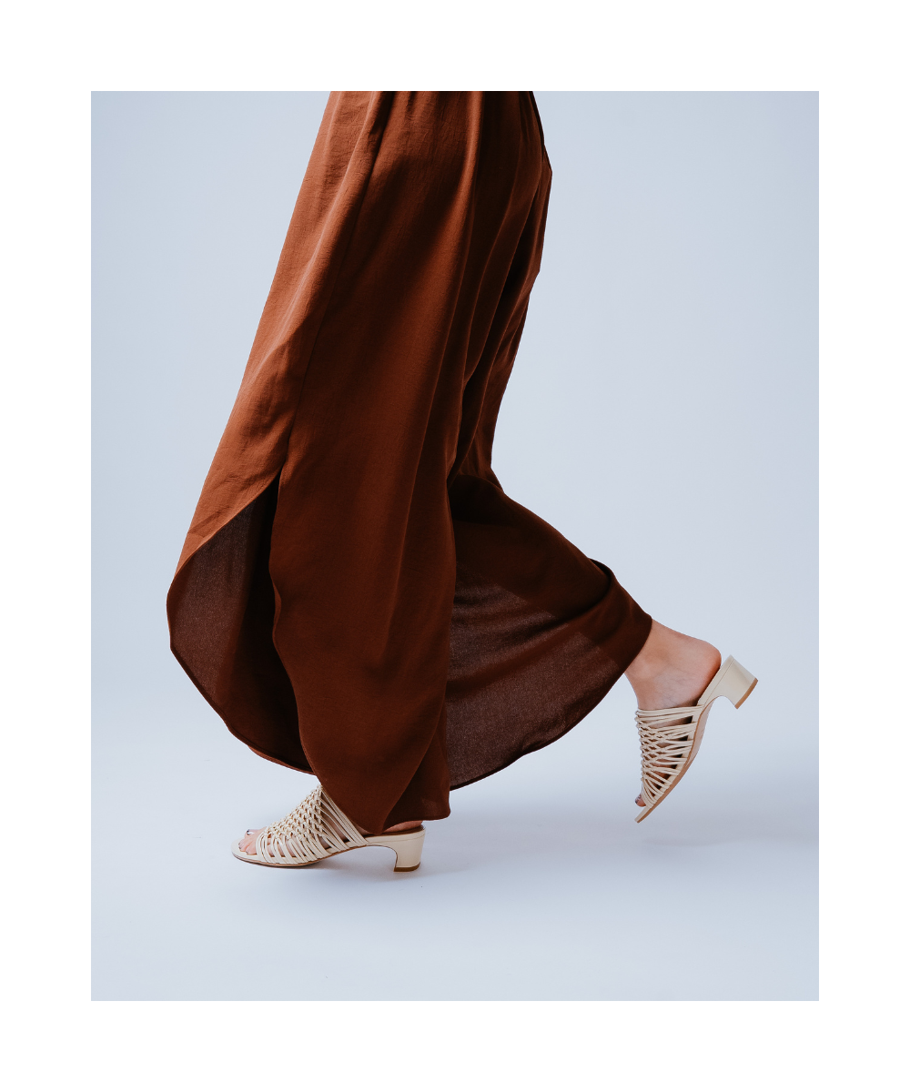 Sandalia destalonada de color dorado elaborado en rafia. Diseñado en punta, este original diseño de ganchillo trenzado a mano por artesanos locales, facilita la transpiración. Adicionalmente, esta sandalia tiene un pequeño tacón que combina elegancia y comodidad.